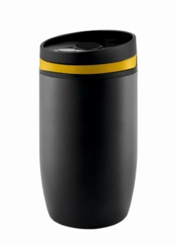 Metmaxx® Thermobecher "CremaOfficinaNero" schwarz/Ring gelb