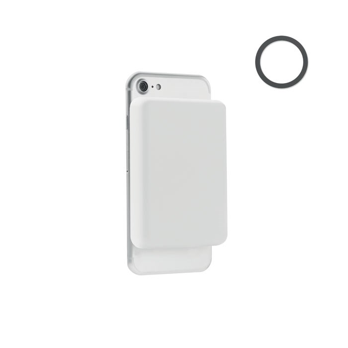 Magnetische Powerbank 5000 mAh mit kabellosem Ladegerät 10 W. Ausgang: DC 9V/1 ,1A (18W), ideal zum schnellen Aufladen. Kompatibel mit iPhone® 12 und neueren Modellen. Inkl. magnetischen Metallring zur Unterstützung anderer nicht-magnetischer, wireless aufladbarer Telefone. Eingang/Ausgang: Typ-C. PD (Power Delivery Ausgang), der auch das Aufladen der neuesten Laptops ermöglicht.