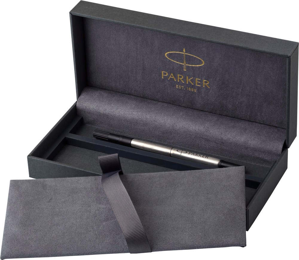 Parker Sonnet Tintenroller aus Edelstahl mit Kappe. Schreibfarbe: schwarz. Verpackt in einer Geschenkbox.