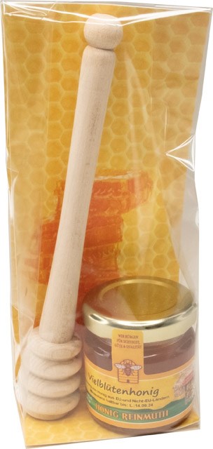 Inhalt: 50 g Vielblüten-Honig, Honigheber aus Holz