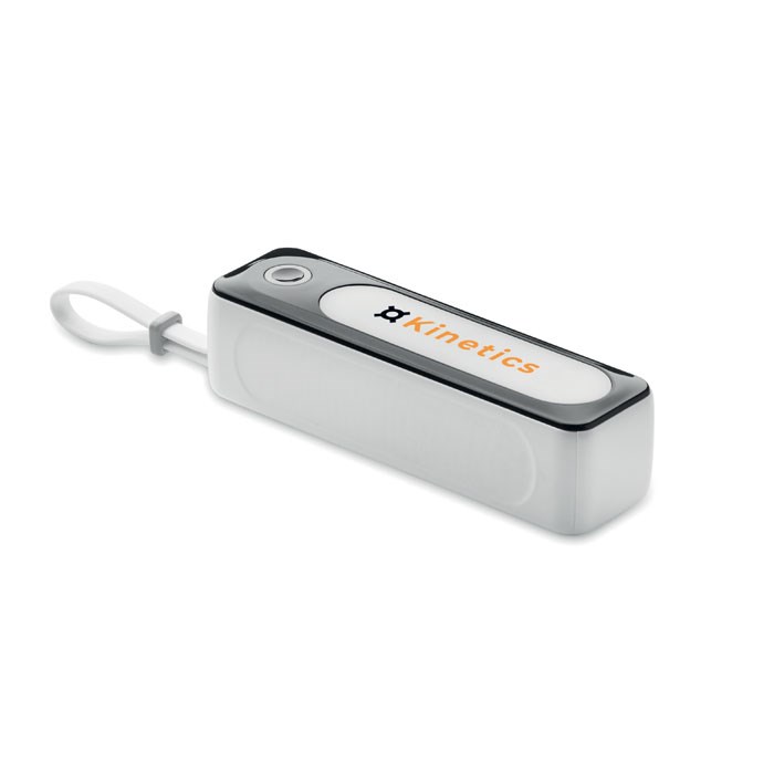 5000 mAh Powerbank. ABS-Gehäuse. Mit COB Leuchte (6 LEDs) mit 4 Lichteinstellungen. Ausgangsstrom DC5V/2A 1x Typ A und 1x Typ C in/out. Inkl. integriertes USB-Kabel mit Typ-C-Stecker.