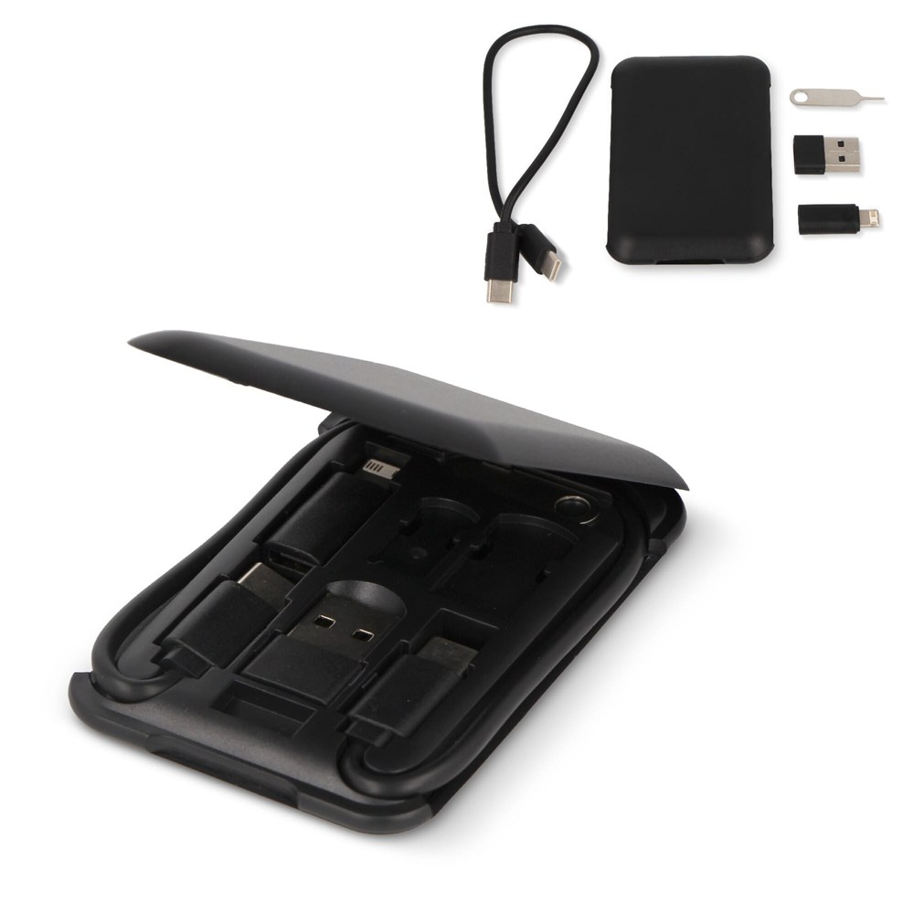 Bleiben Sie mit unserem vielseitigen Reiseset auch unterwegs verbunden! Mehrere USB-Anschlüsse sorgen für Kompatibilität mit all Ihren Geräten. Der praktische integrierte Telefonhalter hilft Ihnen beim Ansehen von Videos und anderen Dingen. Wie zu erwarten, ist der Artikel aus recycelten Materialien hergestellt.