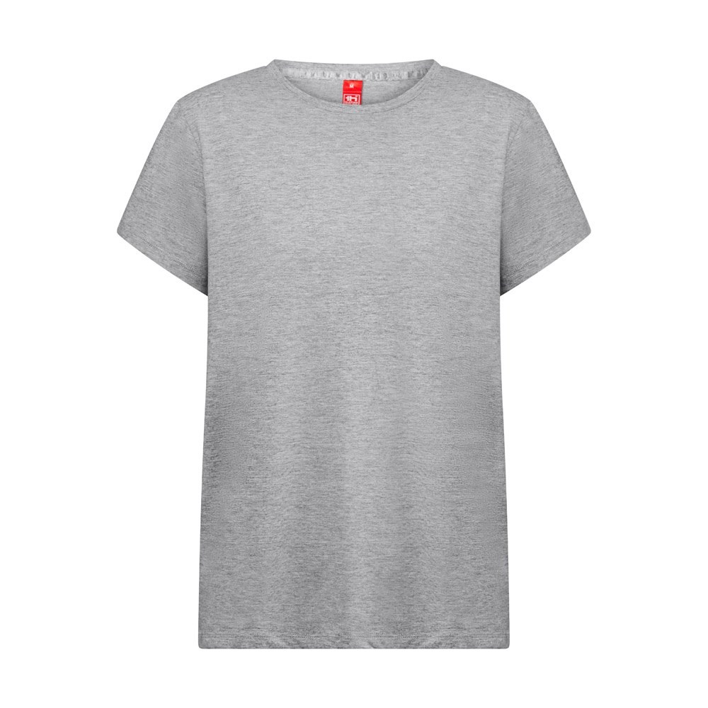 Regulär geschnittenes T-Shirt für Frauen (150 g/m²) mit enzymatischer Behandlung aus Jersey-Stoff (100 % Baumwolle aus nachhaltigem Anbau). Es hat einen dünnen doppelten Kragen aus Jersey mit einem Verstärkungsband aus Satin. Geschnitten und genäht mit doppelten Nähten an den Ärmeln und an der Unterseite. Größen: XS, S, M, L, XL, XXL