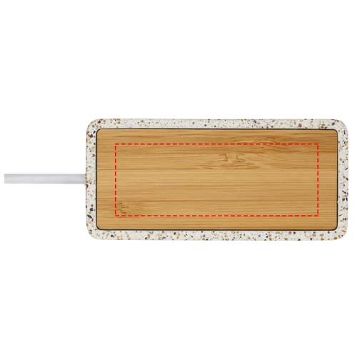 USB 2.0-Hub aus einer Kombination aus natürlichem Terrazzo und Bambus. Enthält 1 Typ-C- und 3 USB-A-Ausgänge. Lieferung in einer Geschenkbox inklusive Bedienungsanleitung (beides aus nachhaltigen Materialien).