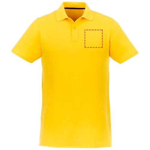 Das Helios Kurzarm-Poloshirt für Herren kombiniert raffinierten Stil mit einzigartigen, individuellen Branding-Optionen. Es ist aus 180 g/m² Baumwollpiqué gefertigt und bietet leichten Komfort und Strapazierfähigkeit. Die Innenausstattung, einschließlich des abreißbaren Hauptetiketts, ermöglicht die Platzierung eines individuellen Logos und macht es zur perfekten Wahl für jede Veranstaltung. Mit seinem klassischen Polokragen und den kurzen Ärmeln lässt es sich mühelos von legeren zu formellen Anlässen kombinieren. Mehrere Farben verfügbar, passend zu jeder Marke.