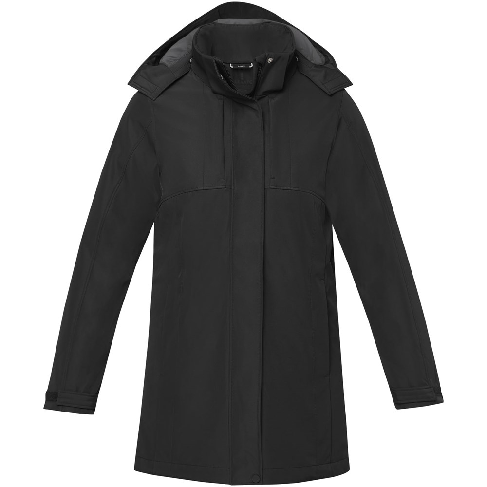 Der isolierte Hardy Parka für Damen - eine perfekte Kombination aus Stil, Wärme und Funktionalität. Hergestellt aus 205 g/m² 240T Poly Pongee Gewebe aus Polyester und gefüttert mit 60 g/m² 210T Taffeta aus Polyester. Mit einer Wasserdichtigkeit von 8000 mm und einer Atmungsaktivität von 5000 g/m² bietet er hervorragenden Schutz vor den Elementen und sorgt gleichzeitig für optimalen Komfort bei Outdoor-Aktivitäten. Der Parka verfügt über eine abnehmbare Kapuze für Vielseitigkeit und Komfort. Die Sturmklappe mit Kinnschutz bietet zusätzlichen Schutz und Komfort. Die Brusttasche mit Reißverschluss bietet zusätzlichen Stauraum für Ihre wichtigsten Utensilien, und in der Innentasche lassen sich weitere Gegenstände sicher verstauen. Die verstellbaren Ärmelbündchen mit Klettverschluss ermöglichen eine individuelle Passform, die sich perfekt an wechselnde Wetterbedingungen anpassen lässt. Der Hardy Parka ist die ideale Wahl, um bei kalten Wetterbedingungen warm und stilvoll zu bleiben. Diese Jacke hat eine taillierte Form für einen femininen Look.