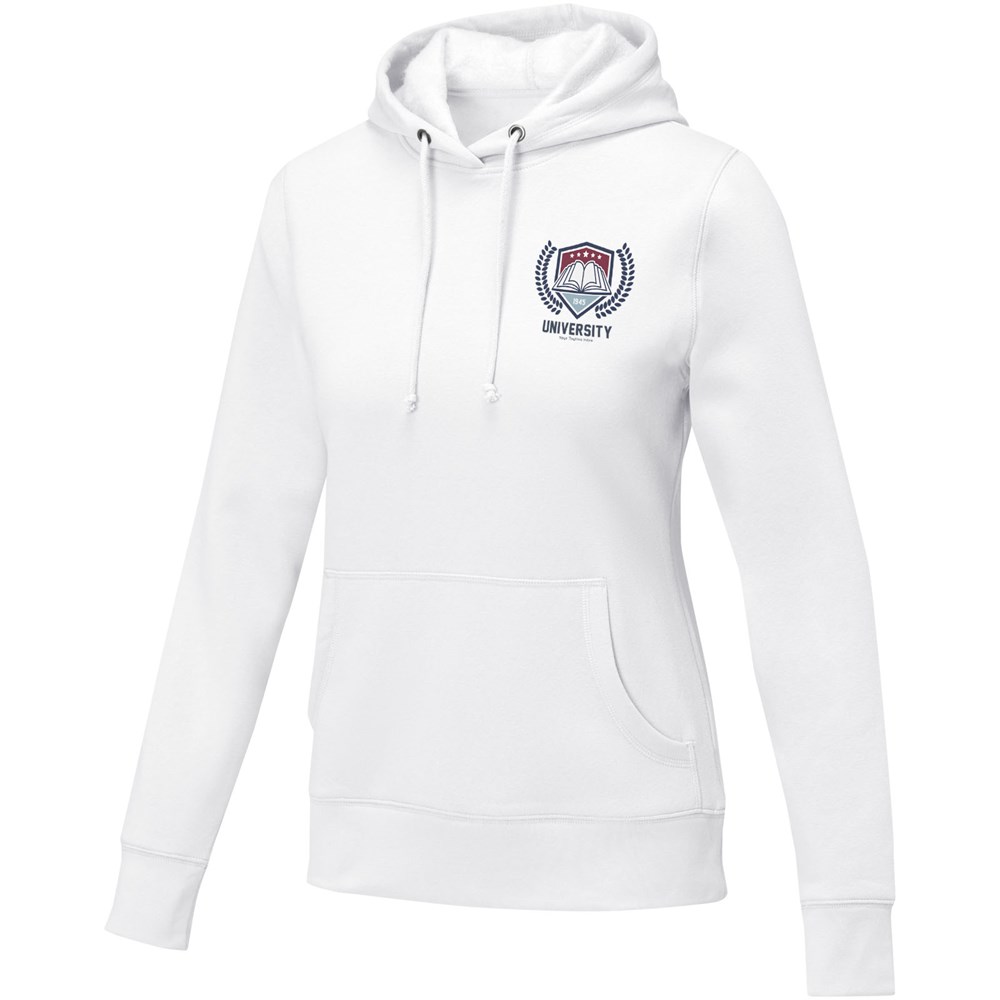 Der Charon Kapuzenpullover für Damen - der ultimativ komfortable Stil. Er ist aus einer 240 g/m² schweren Mischung aus Baumwolle und Polyester gefertigt, die eine perfekte Balance zwischen Komfort und Atmungsaktivität bietet. Die gebürstete Innenseite sorgt für Gemütlichkeit, ergänzt durch flach gestrickte Rippenbündchen und den unteren Saum, die den Komfort optimieren. Der verstellbare Kordelzug an der Kapuze sorgt für eine individuelle Passform, während die Kängurutasche einen Hauch von Funktionalität und urbanem Flair verleiht. Darüber hinaus können Sie die Innenseite des Hoodies mit Ihrem persönlichen Branding versehen oder individuell gestalten. Ob Sie sich zu Hause entspannen oder zu einem lässigen Abenteuer aufbrechen, der Charon Hoodie ist der ideale Begleiter für jede Umgebung. Dieser Kapuzenpulli hat eine taillierte Form für einen femininen Look.