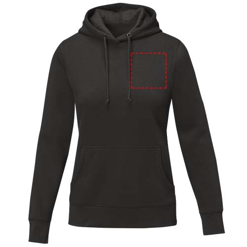 Der Charon Kapuzenpullover für Damen - der ultimativ komfortable Stil. Er ist aus einer 240 g/m² schweren Mischung aus Baumwolle und Polyester gefertigt, die eine perfekte Balance zwischen Komfort und Atmungsaktivität bietet. Die gebürstete Innenseite sorgt für Gemütlichkeit, ergänzt durch flach gestrickte Rippenbündchen und den unteren Saum, die den Komfort optimieren. Der verstellbare Kordelzug an der Kapuze sorgt für eine individuelle Passform, während die Kängurutasche einen Hauch von Funktionalität und urbanem Flair verleiht. Darüber hinaus können Sie die Innenseite des Hoodies mit Ihrem persönlichen Branding versehen oder individuell gestalten. Ob Sie sich zu Hause entspannen oder zu einem lässigen Abenteuer aufbrechen, der Charon Hoodie ist der ideale Begleiter für jede Umgebung. Dieser Kapuzenpulli hat eine taillierte Form für einen femininen Look.