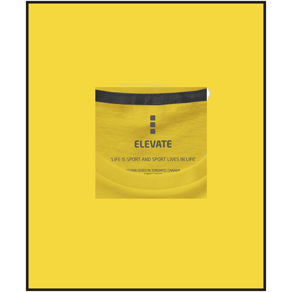 Das kurzärmelige Nanaimo Damen-T-Shirt aus 160 g/m2 Baumwolle ist perfekt für jede Gelegenheit und eine bequeme Ergänzung für jeden Kleiderschrank. Die ringgesponnene Baumwolle sorgt für ein stärkeres und glatteres Garn, was zu einem haltbareren Stoff führt, der ein hochwertiges Branding garantiert. Der feminine Schnitt und die Seitennähte sorgen für eine gute Passform, während das aufgedruckte Elevate-Branding im Nacken für zusätzlichen Komfort sorgt. Die verstärkten Schultern sorgen auch nach längerem Gebrauch für einen kontinuierlichen Sitz.