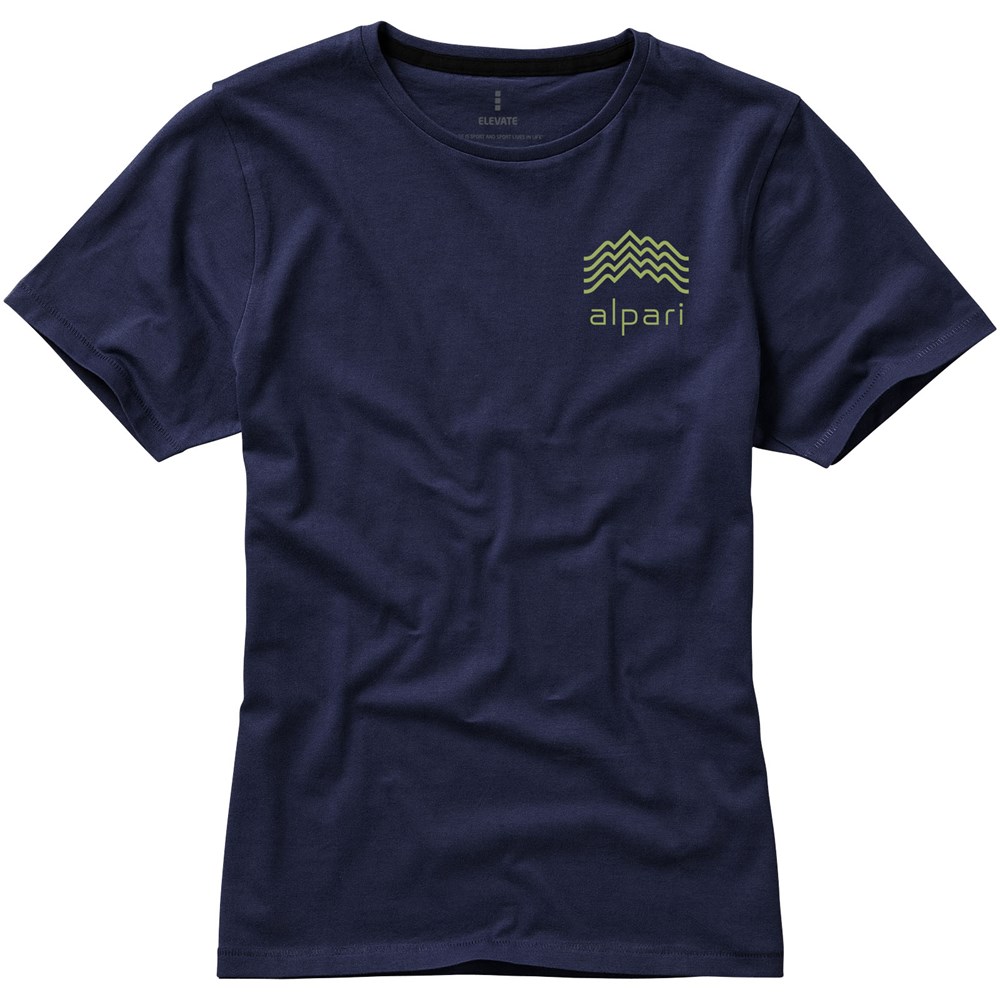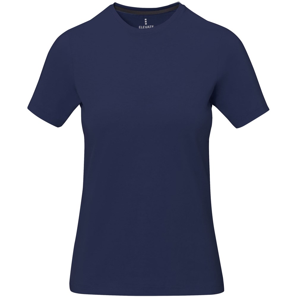 Das kurzärmelige Nanaimo Damen-T-Shirt aus 160 g/m2 Baumwolle ist perfekt für jede Gelegenheit und eine bequeme Ergänzung für jeden Kleiderschrank. Die ringgesponnene Baumwolle sorgt für ein stärkeres und glatteres Garn, was zu einem haltbareren Stoff führt, der ein hochwertiges Branding garantiert. Der feminine Schnitt und die Seitennähte sorgen für eine gute Passform, während das aufgedruckte Elevate-Branding im Nacken für zusätzlichen Komfort sorgt. Die verstärkten Schultern sorgen auch nach längerem Gebrauch für einen kontinuierlichen Sitz.
