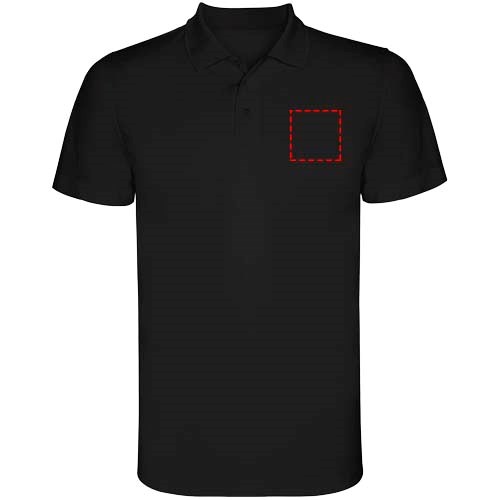 Kurzärmeliges Funktions-Poloshirt. Gestrickter Kragen mit 3-Knopfleiste. Atmungsaktives, leicht zu waschendes und zu trocknendes Material. Herausnehmbares Etikett. Technisches Gewebe. Atmungsaktiver Stoff.