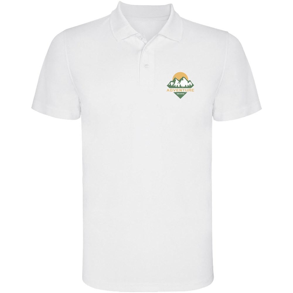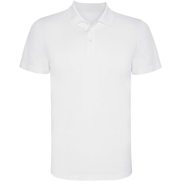 Kurzärmeliges Funktions-Poloshirt. Gestrickter Kragen mit 3-Knopfleiste. Atmungsaktives, leicht zu waschendes und zu trocknendes Material. Herausnehmbares Etikett. Technisches Gewebe. Atmungsaktiver Stoff. Das Modell ist 184 cm groß und trägt Größe L.