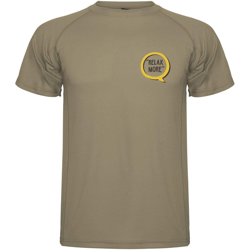 Kurzärmeliges Funktions-T-Shirtmit Raglanärmeln. Rundhalsausschnitt mit verdeckten Nähten. Seitenschlitze mit passender Überwendlingsnaht. Atmungsaktiver Stoff, leicht zu waschen und zu trocknen. Herausnehmbares Etikett. Technisches Gewebe. Ultravioletter Schutzfaktor.