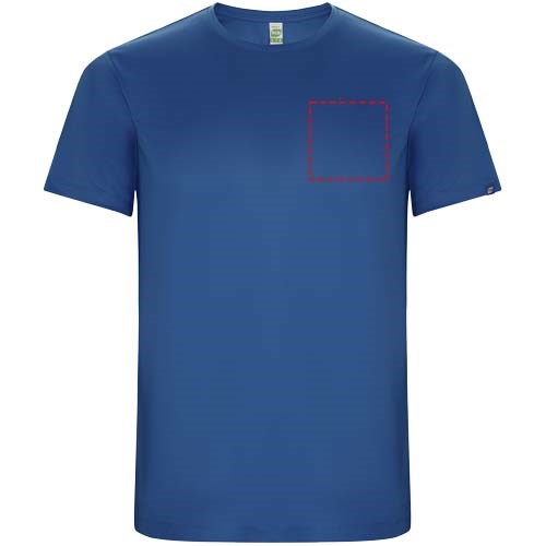 Funktions-T-Shirt aus recyceltem Polyester CONTROL DRY. Rundhalsausschnitt mit farblich abgesetzten Nähten. ECO-Logo-Etikett am Ärmel. Verpackung aus Recyclingmaterial. Herausnehmbares ECO-Etikett. Verpackung aus Recyclingmaterial. Technisches Gewebe. Das Modell ist 180 cm groß und trägt Größe M.