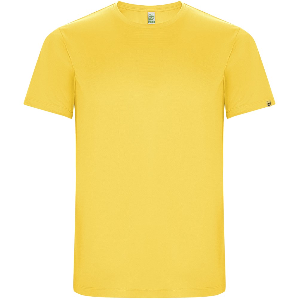 Funktions-T-Shirt aus recyceltem Polyester CONTROL DRY. Rundhalsausschnitt mit farblich abgesetzten Nähten. ECO-Logo-Etikett am Ärmel. Verpackung aus Recyclingmaterial. Herausnehmbares ECO-Etikett. Verpackung aus Recyclingmaterial. Technisches Gewebe. Das Modell ist 115 cm groß und trägt Größe 5/6.