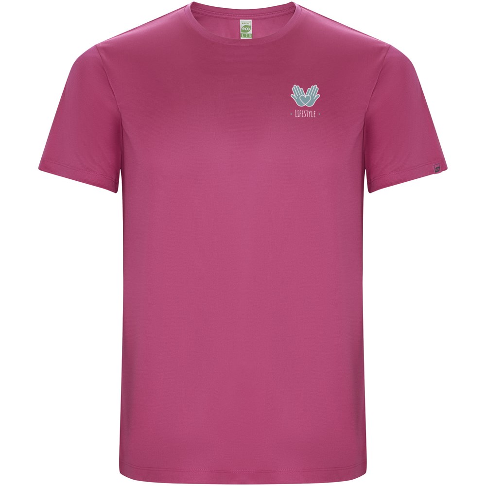 Funktions-T-Shirt aus recyceltem Polyester CONTROL DRY. Rundhalsausschnitt mit farblich abgesetzten Nähten. ECO-Logo-Etikett am Ärmel. Verpackung aus Recyclingmaterial. Herausnehmbares ECO-Etikett. Verpackung aus Recyclingmaterial. Technisches Gewebe. Das Modell ist 115 cm groß und trägt Größe 5/6.