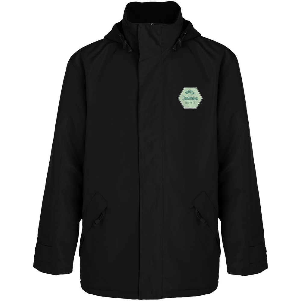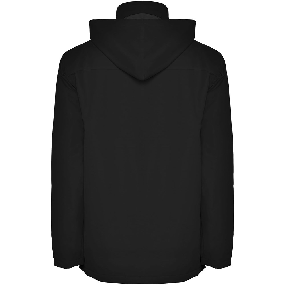 Wattierte, wasserabweisende Jacke. Zentraler Reißverschluss mit Patte. Hoher Kragen mit einrollbarer Kapuze. Seitentaschen mit Reißverschluss und Patte. Verstellbare Ärmelbündchen mit Kordelzug. Zwei Innentaschen mit Haken- und Schlaufenverschluss. Reißverschluss mit Zugang zum Innenfutter. Kindergrößen erhältlich. Wasserabweisend. Winddicht. Die Modells sind 120/122 cm groß und tragen Größe 6.
