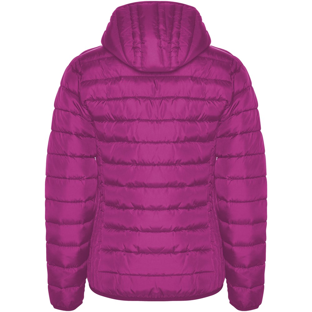 Steppjacke für Damen mit federleichter und softer Wattierung und angesetzter Kapuze. Umgekehrte Reißverschlüsse mit passendem Kinnschutz. Zwei Fronttaschen mit Reißverschluss. Passende elastische Einfassungen an Ärmeln, Saum und Kapuze. Kontrastfarbenes Innenfutter. Inklusive verstaubarer Tragetasche. Leichtes und faltbares Kleidungsstück. Wasserabweisend. Winddichtes Modell.