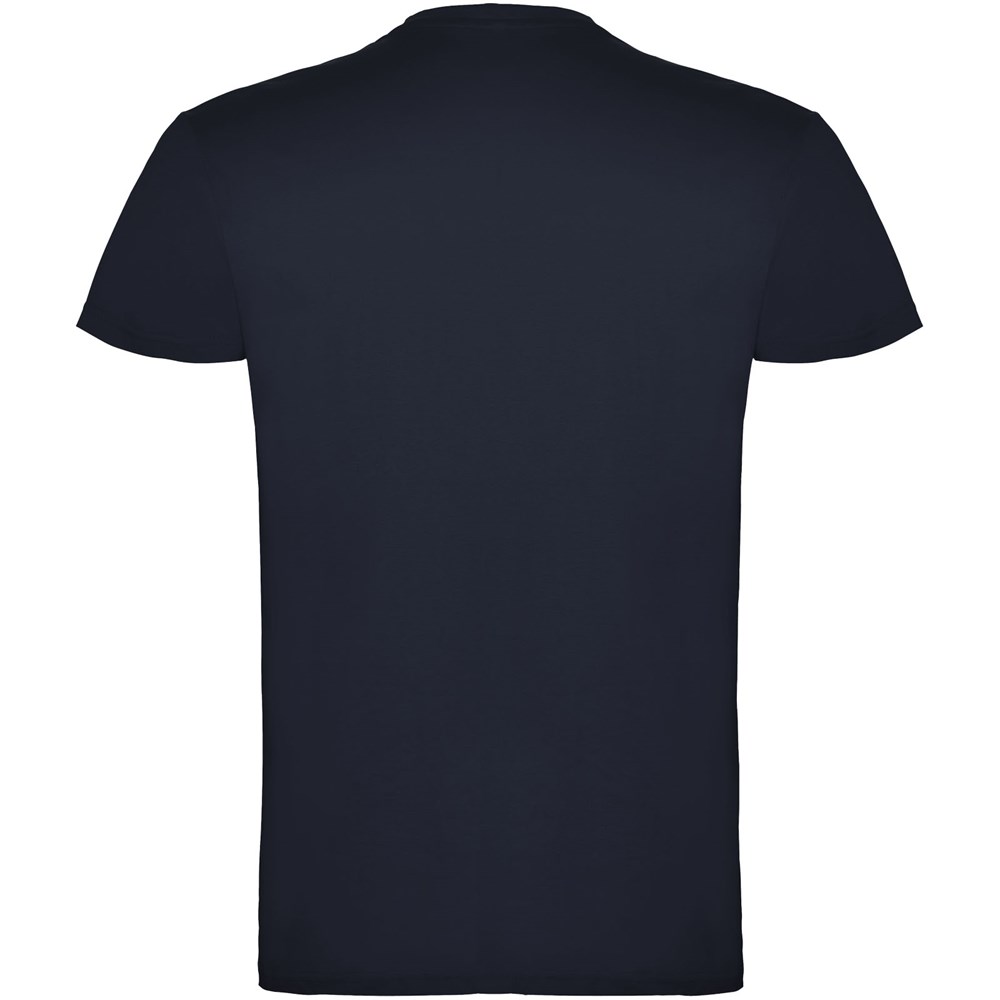 Kurzärmeliges T-Shirt mit doppellagigem Rundhalsausschnitt aus Elasthan, hergestellt aus schlauchförmigem Material. Verstärkte und verdeckte Nähte am Kragen. Herausnehmbares Etikett. Das Modell ist 120 cm groß und trägt Größe 5/6.