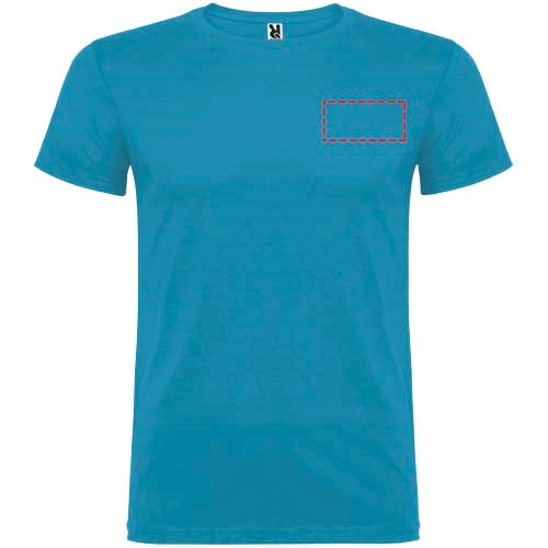 Kurzärmeliges T-Shirt mit doppellagigem Rundhalsausschnitt aus Elasthan, hergestellt aus schlauchförmigem Material. Verstärkte und verdeckte Nähte am Kragen. Herausnehmbares Etikett. Das Modell ist 120 cm groß und trägt Größe 5/6.