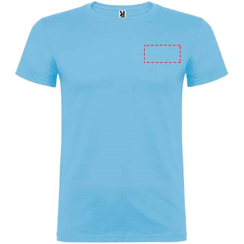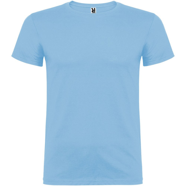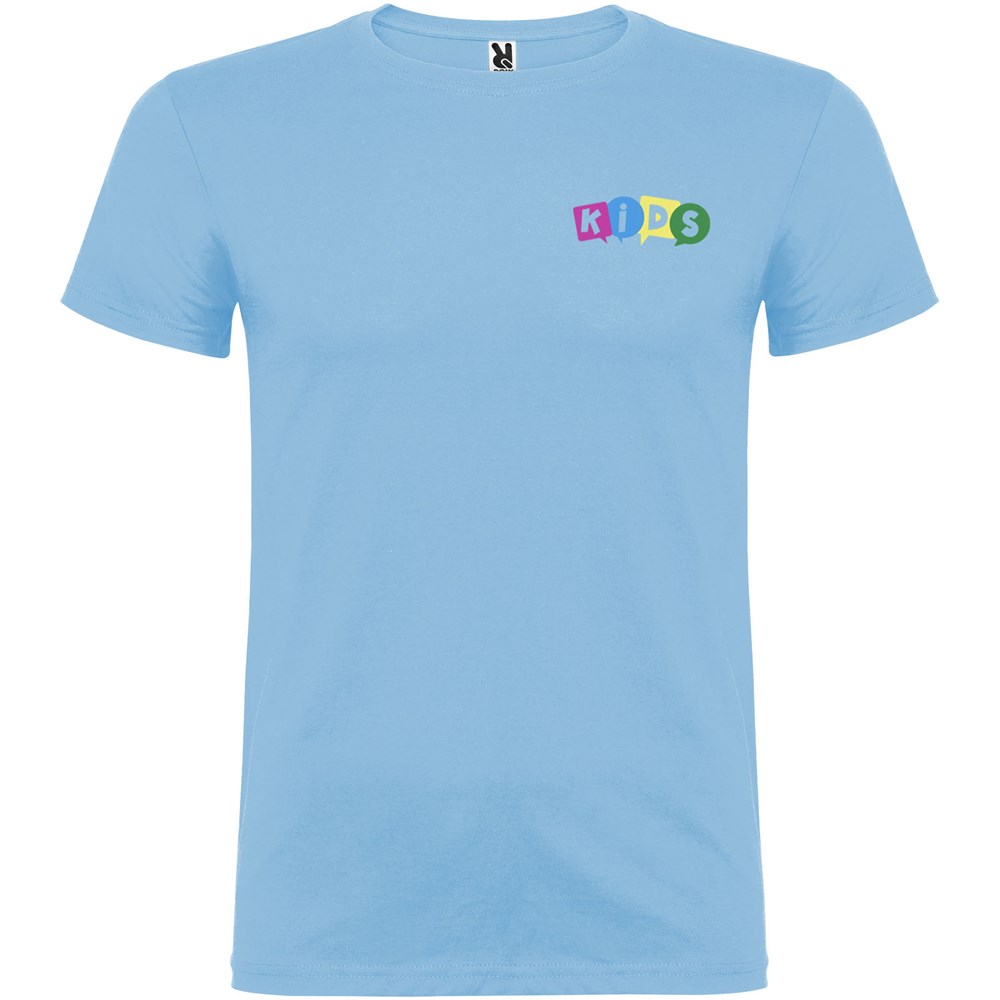 Kurzärmeliges T-Shirt mit doppellagigem Rundhalsausschnitt aus Elasthan, hergestellt aus schlauchförmigem Material. Verstärkte und verdeckte Nähte am Kragen. Herausnehmbares Etikett. Das Modell ist 120 cm groß und trägt Größe 5/6.