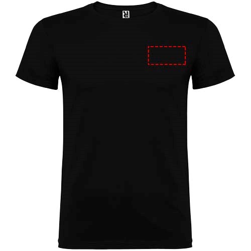 Kurzärmeliges T-Shirt mit doppellagigem Rundhalsausschnitt aus Elasthan, hergestellt aus schlauchförmigem Material. Verstärkte und verdeckte Nähte am Kragen. Herausnehmbares Etikett. Das Modell ist 120 cm groß und trägt Größe 5/6.