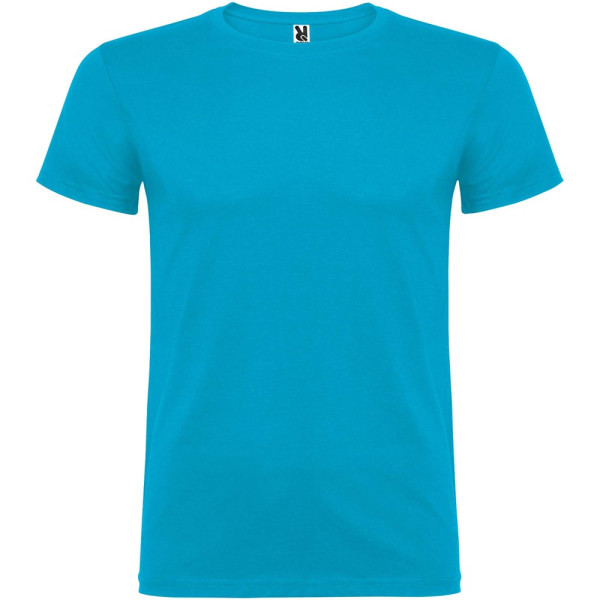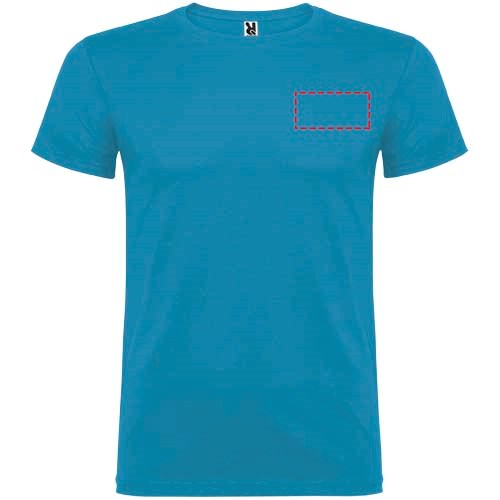 Kurzärmeliges T-Shirt mit doppellagigem Rundhalsausschnitt aus Elasthan, hergestellt aus schlauchförmigem Material. Verstärkte und verdeckte Nähte am Kragen. Herausnehmbares Etikett. Das Modell ist 120 cm groß und trägt Größe 5/6.