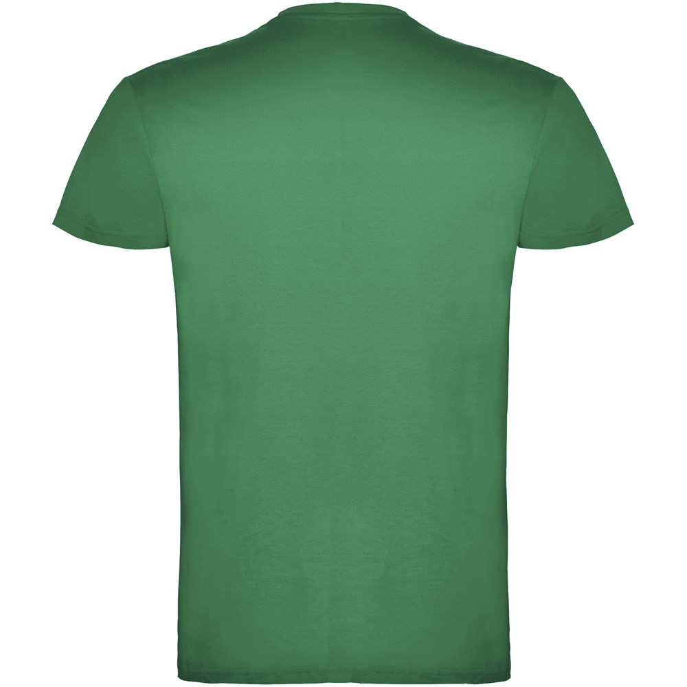 Kurzärmeliges T-Shirt mit doppellagigem Rundhalsausschnitt aus Elasthan, hergestellt aus schlauchförmigem Material. Verstärkte und verdeckte Nähte am Kragen. Herausnehmbares Etikett. Das Modell ist 120 cm groß und trägt Größe 5/6.
