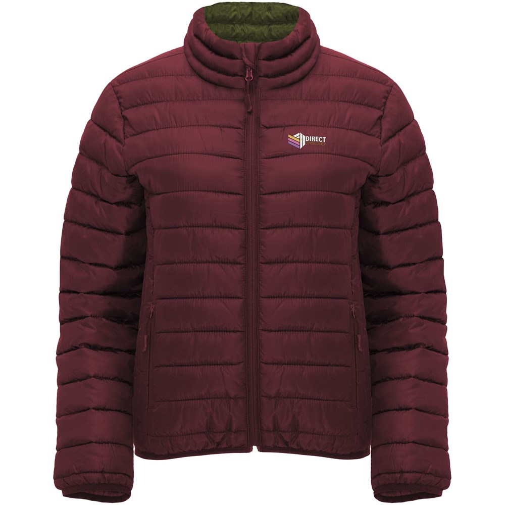 Wattierte Steppjacke für Damen. Umgekehrte Reißverschlüsse mit Kinnschutz und Zipper. Zwei Fronttaschen mit Reißverschluss. Passende elastische Bündchen an Kragen, Ärmeln und Saum. Kontrastfarbiges Innenfutter. Inklusive verstaubarer Transporttasche. Leicht und faltbar. Figurbetonter Schnitt. Herausnehmbares Etikett. Wasserabweisend. Winddicht. Das Modell ist 179 cm groß und trägt Größe S.