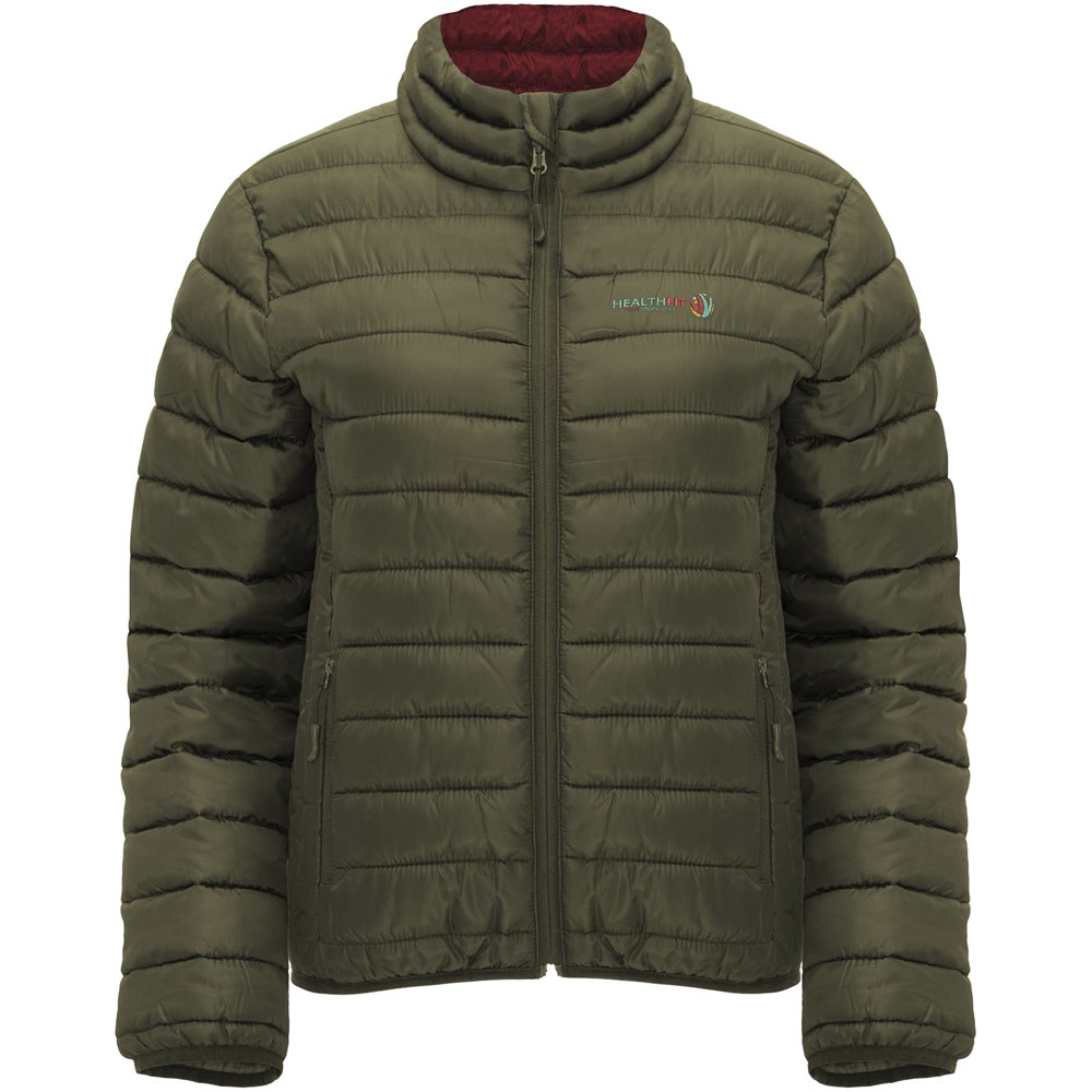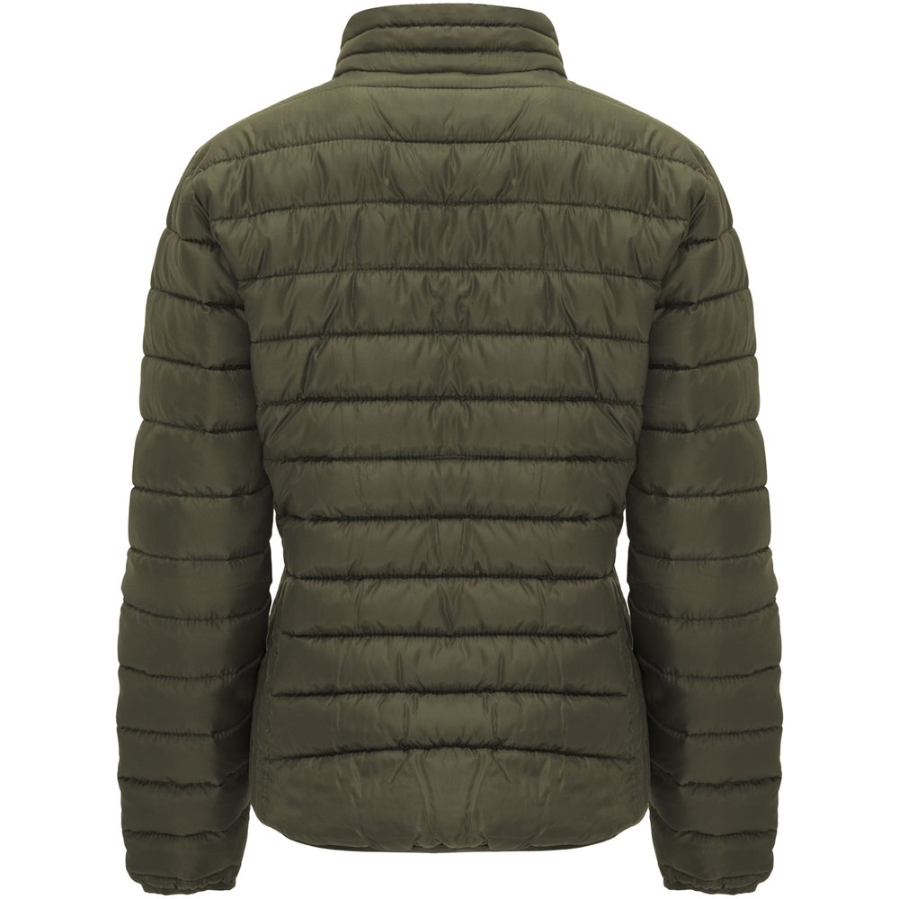 Wattierte Steppjacke für Damen. Umgekehrte Reißverschlüsse mit Kinnschutz und Zipper. Zwei Fronttaschen mit Reißverschluss. Passende elastische Bündchen an Kragen, Ärmeln und Saum. Kontrastfarbiges Innenfutter. Inklusive verstaubarer Transporttasche. Leicht und faltbar. Figurbetonter Schnitt. Herausnehmbares Etikett. Wasserabweisend. Winddicht. Das Modell ist 179 cm groß und trägt Größe S.