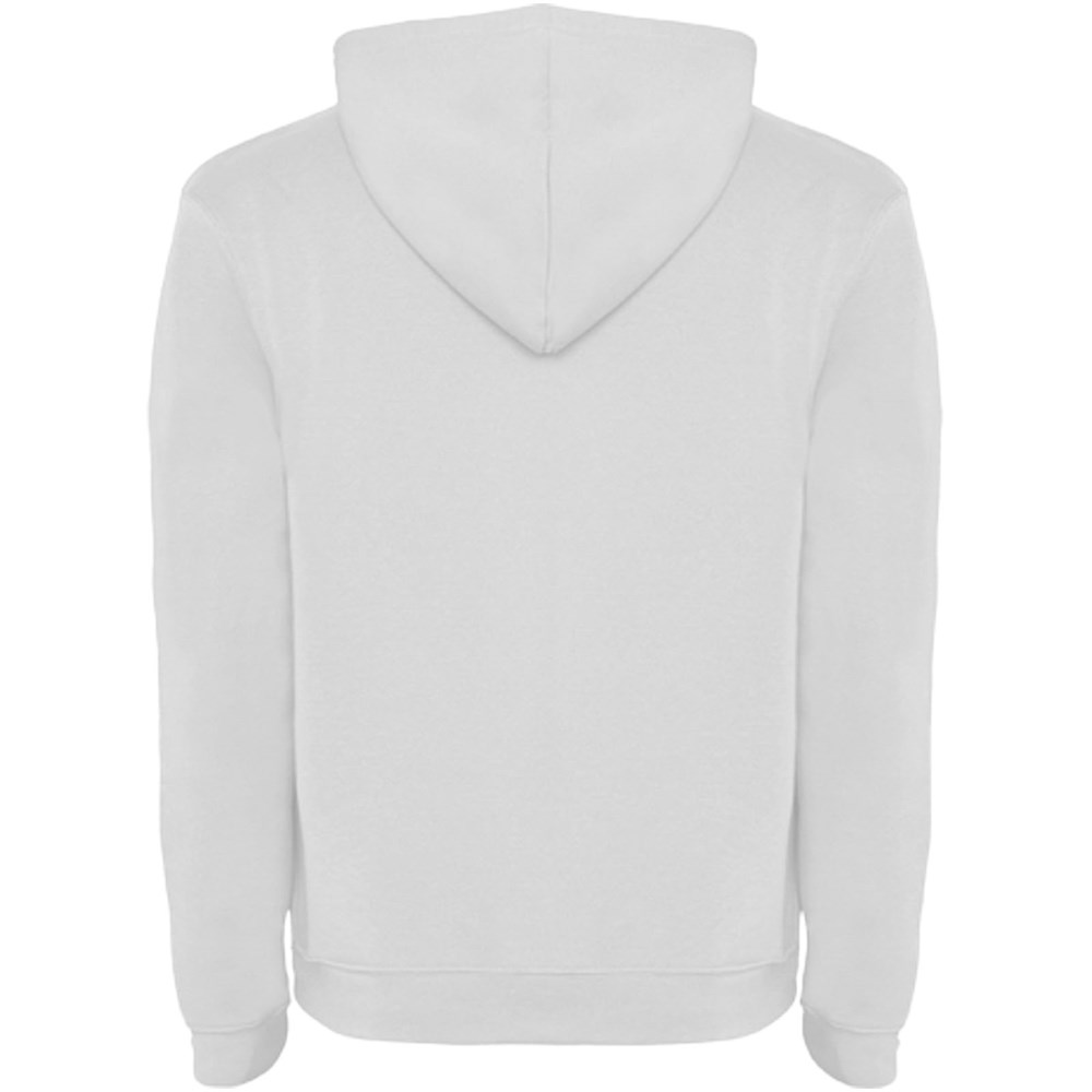 Kapuzenpullover mit doppeltem Stoff, verstellbarem Kordelzug in Kontrastfarbe, verstärkten und verdeckten Nähten am Kragen und Kängurutasche. Verfügbar in Zweifarbig und Uni. Elastischer 1×1-Rippstrick an Ärmeln und Bund. Abnehmbares Etikett. Das Modell ist 185 cm groß und trägt Größe M.