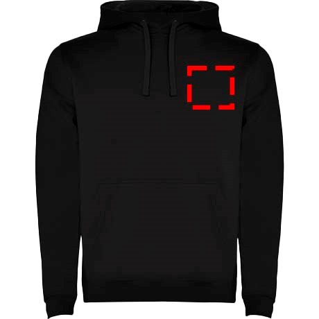 Kapuzenpullover mit doppeltem Stoff, verstellbarem Kordelzug in Kontrastfarbe, verstärkten und verdeckten Nähten am Kragen und Kängurutasche. Verfügbar in Zweifarbig und Uni. Elastischer 1×1-Rippstrick an Ärmeln und Bund. Abnehmbares Etikett. Das Modell ist 185 cm groß und trägt Größe M.