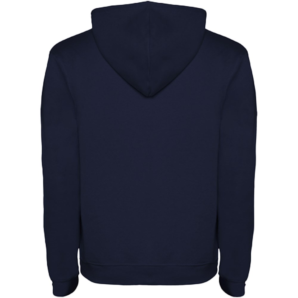 Kapuzenpullover mit doppeltem Stoff, verstellbarem Kordelzug in Kontrastfarbe, verstärkten und verdeckten Nähten am Kragen und Kängurutasche. Verfügbar in Zweifarbig und Uni. Elastischer 1×1-Rippstrick an Ärmeln und Bund. Abnehmbares Etikett. Das Modell ist 185 cm groß und trägt Größe M.