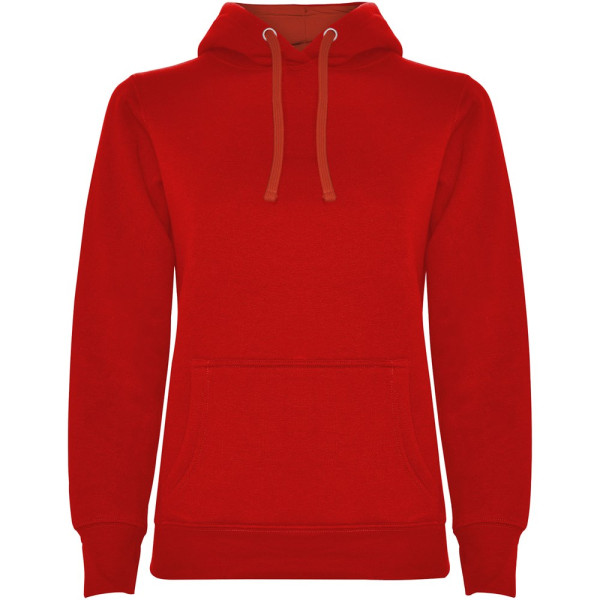 Figurbetontes Sweatshirt mit zweifarbiger, doppellagiger Kapuze, verstellbarem Kordelzug in Kontrastfarbe, verdeckten Nähten am Kragen und Kängurutasche. Elastischer 1×1-Rippstrick an Ärmeln und Saum. Detail mit Daumenschlitz. Herausnehmbares Etikett. Das Modell ist 179 cm groß und trägt Größe S.