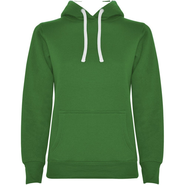 Figurbetontes Sweatshirt mit zweifarbiger, doppellagiger Kapuze, verstellbarem Kordelzug in Kontrastfarbe, verdeckten Nähten am Kragen und Kängurutasche. Elastischer 1×1-Rippstrick an Ärmeln und Saum. Detail mit Daumenschlitz. Herausnehmbares Etikett. Das Modell ist 179 cm groß und trägt Größe S.