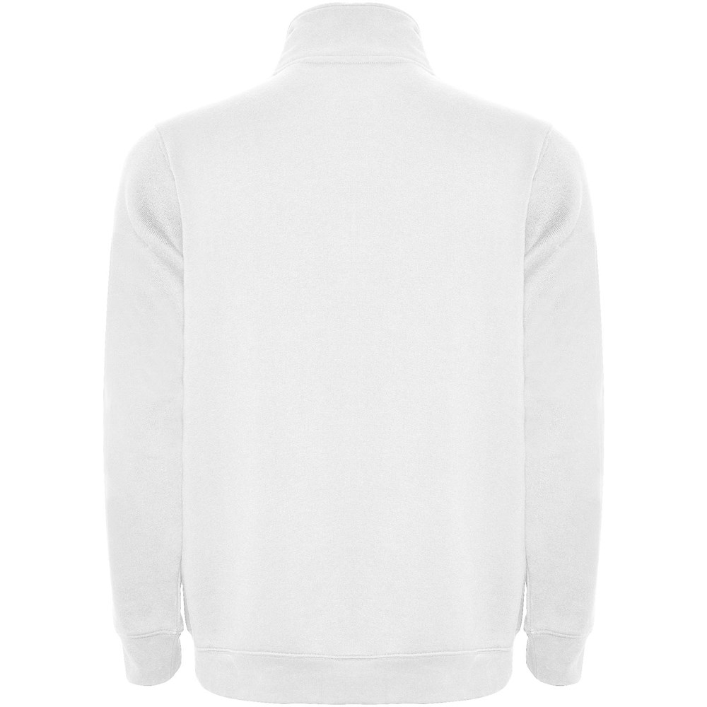 Sweatshirt mit passendem halben Reißverschluss und Polokragen. Passender Innenkragen. Verstärkte, abgedeckte Nähte am Innenkragen. 1×1 Rippbündchen an Ärmeln und Taille. Das Modell ist 185 cm groß und trägt Größe M.