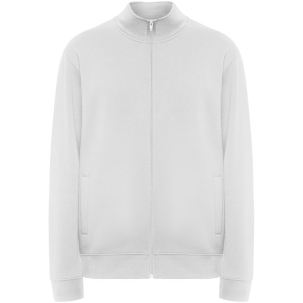 Pullover mit Stehkragen und passendem Reißverschluss. Passender Innenkragen mit verstärkten und verdeckten Nähten. Bündchen und Taille aus 1×1-Rippstrick. Herausnehmbares Etikett. Das männliche Modell ist 185 cm groß und trägt Größe L, das weibliche Modell ist 168 cm groß und trägt Größe S.