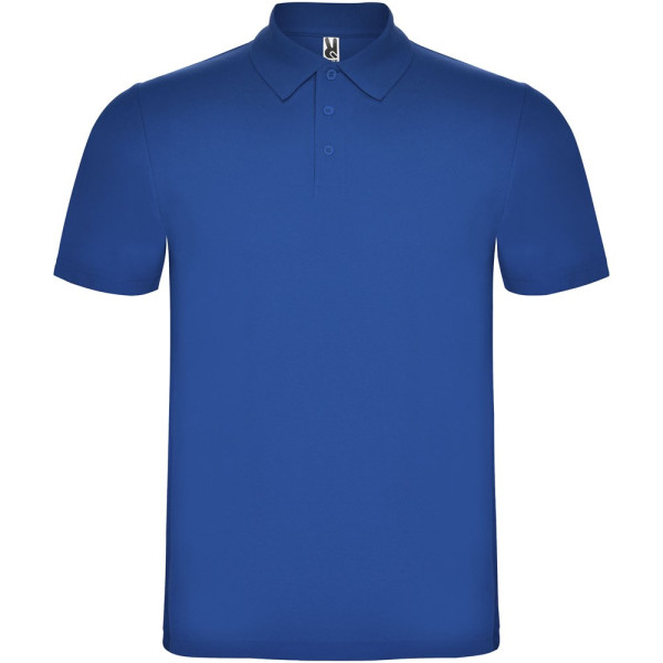 Kurzärmeliges Poloshirt mit 3-Knopfleiste und 1 × 1 geripptem Kragen. Verstärkte und verdeckte Nähte am Kragen. Herausnehmbares Etikett. Das Modell ist 190 cm groß und trägt Größe L.