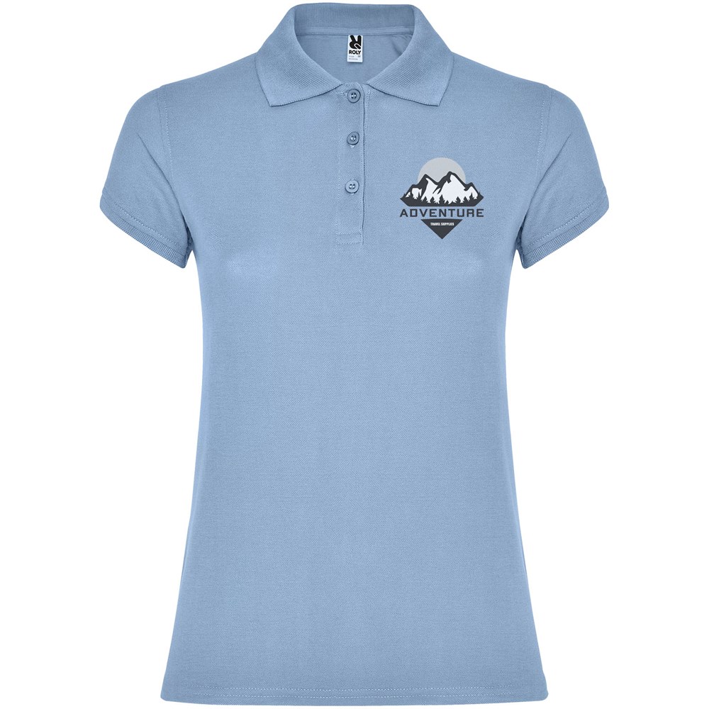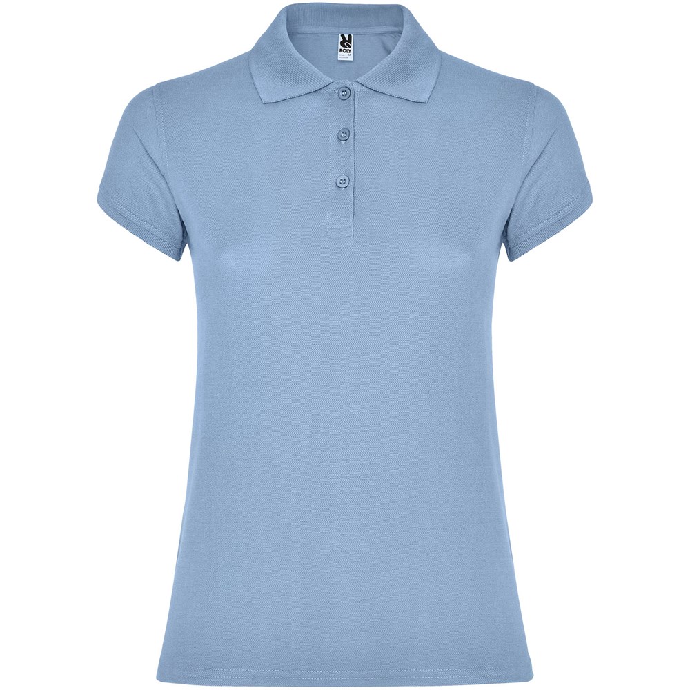 Kurzärmeliges Poloshirt für Damen. Verstärkte und verdeckte Nähte am Innenkragen. 1x1 Rippstrickbündchen an Ärmeln und Kragen. Seitennähte. 3-Knopfleiste und Seitenschlitze. Optionale Tasche. Herausnehmbares Etikett. Das Modell ist 179 cm groß und trägt Größe S.