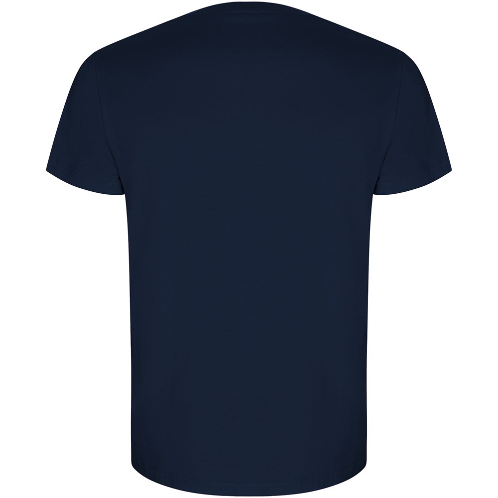 Schlauchförmiges kurzärmeliges T-Shirt aus Bio-Baumwolle. Rundhalsausschnitt mit 1 × 1 Rippstrick. Ziernähte am Saum und an den Ärmeln. Herausnehmbares Etikett. Das Modell ist 185 cm groß und trägt Größe L.