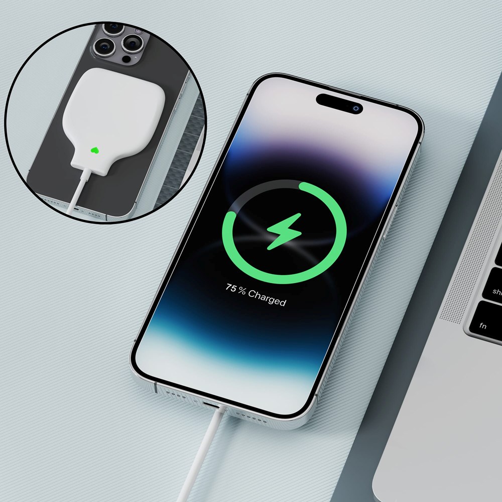 Begeistern Sie sich für Veränderung mit unserem kabellosen Ladegerät! Hergestellt aus Ozean-Plastik, kompakt, Magsafe-fähig und bietet 15W Ladeleistung sowohl für iPhone als auch Android. Entdecken Sie das grüne Herz: es signalisiert schnelles Laden und verbindet Nachhaltigkeit mit Bequemlichkeit.