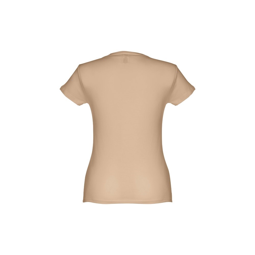 Damen T-shirt aus Strickjersey und 100% Baumwolle (150 g/m²), kurzarm mit kardiertem Baumwollfaden. Bei der Farbe 183 bestehend aus 90% Baumwolle und 10% Viskose. Schmaler Jersey-Kragen mit Satin-Verstärkungsband. Doppelnaht an Ärmeln und Saum. Tailliert. Größe: 3XL
