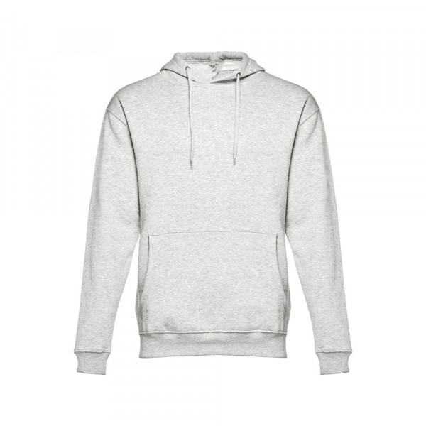 Sweatshirt aus 50% Baumwolle und 50% Polyester (320g/m²), unisex mit einer Kapuze mit Kordelzug. Innen kardiert, 1x1 Ripp, Bund an Ärmel und einer Kängurutasche. Größen: XS, S, M, L, XL, XXL