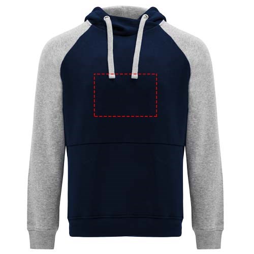 Zweifarbiger Unisex Kapuzenpulli. Kapuze mit gekreuztem Kragen und Metallösen. Innenkapuze, Kordelzug und Raglanärmel in Kontrastfarbe. Kängurutasche. Bündchen und Saum aus elastischem 1×1-Rippstrick. Abnehmbares Etikett.