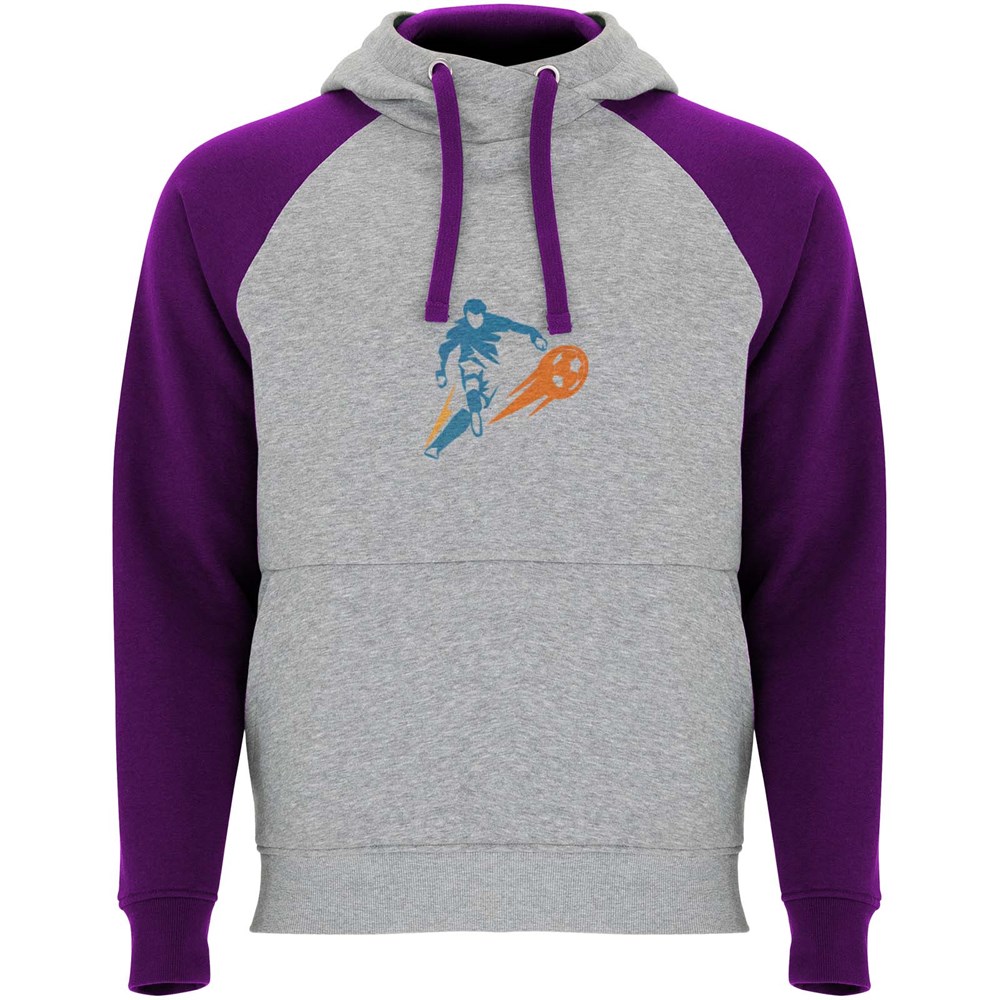 Zweifarbiger Unisex Kapuzenpulli. Kapuze mit gekreuztem Kragen und Metallösen. Innenkapuze, Kordelzug und Raglanärmel in Kontrastfarbe. Kängurutasche. Bündchen und Saum aus elastischem 1×1-Rippstrick. Abnehmbares Etikett.