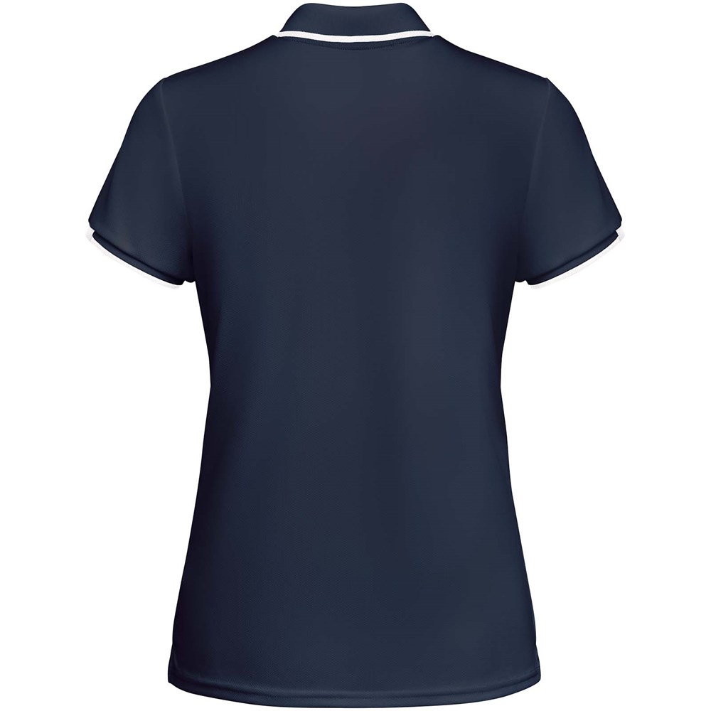 Antibakterieller Stoff aus recyceltem Polyester. 1x1-Rippstrick am Kragen und Details an den Ärmeln. Verstärkte, verdeckte Nähte am Kragen. Knopfleiste mit 2 verdeckten Druckknöpfen. Details und Schulterpartien in Kontrastfarbe. Seitenschlitze am Saum. Körperbetont. Abnehmbares Etikett.