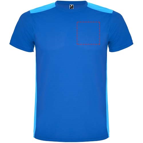 Funktions-T-Shirt aus atmungsaktivem Stoff. Rundhalsausschnitt. Kombination aus zwei Polyestergeweben im Rücken- und Schulterbereich. Polyester Bienenwabe Vorne und 3D-Netz Polyester auf Schulter und Rücken. Material ist feuchtigkeitabsorbierend. Ziernähte auf den Schultern und Seiten. Schnitt mit verlängertem Rückenteil. Abnehmbares Etikett.