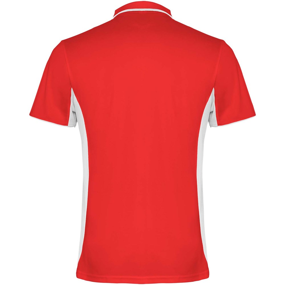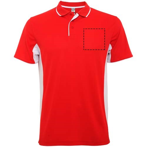 Zweifarbige Kombination. Strickkragen mit 3er-Knopfleiste, verdeckten Nähten und Streifen in Kontrastfarbe. Atmungsaktives Funktionsmaterial, leicht zu waschen und zu trocknen. Abnehmbares Etikett.