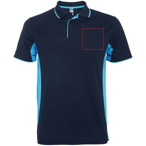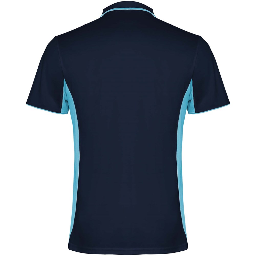 Zweifarbige Kombination. Strickkragen mit 3er-Knopfleiste, verdeckten Nähten und Streifen in Kontrastfarbe. Atmungsaktives Funktionsmaterial, leicht zu waschen und zu trocknen. Abnehmbares Etikett.