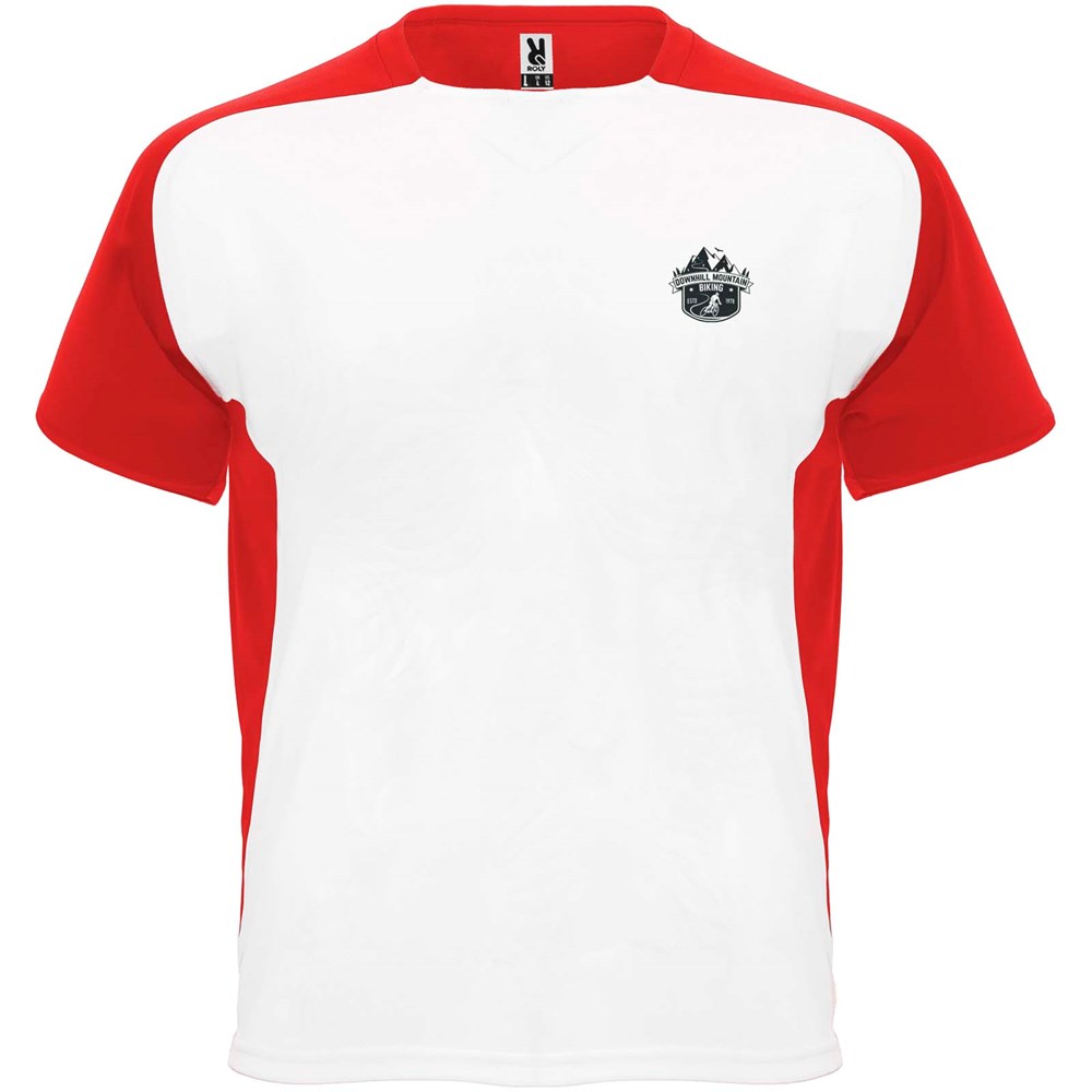 Funktions-T-Shirt aus atmungsaktivem Stoff. Rundhalsausschnitt mit passenden verdeckten Nähten. Raglanärmel und Kontrasteinsätze an Arm und Seitenteilen. Abnehmbares Etikett.